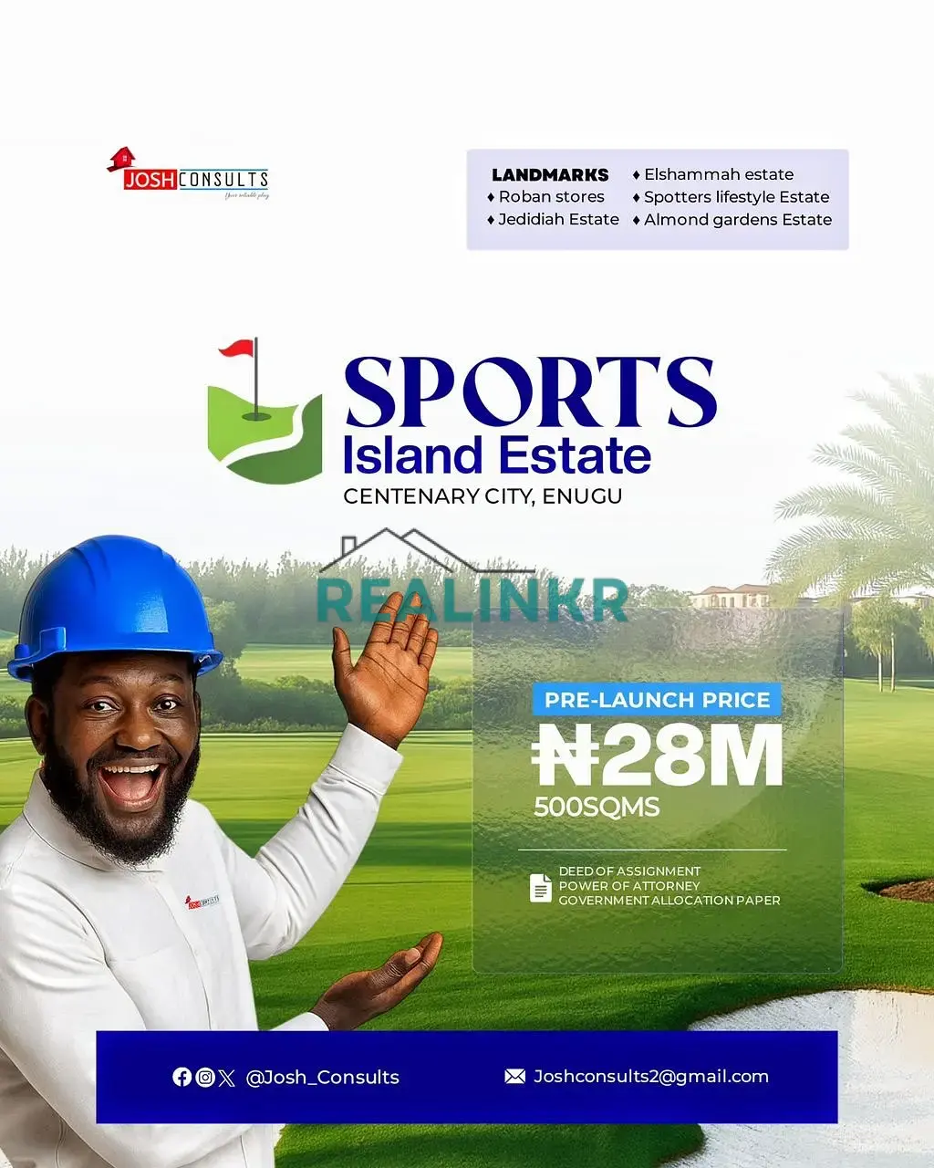 Welcome to Sports Island Estate, a buy-and-build residential estate located in the heart of Centenary City, Enugu. Designed for those who value prime location, security, and modern living, this estate offers you the chance to own a piece of Enugu’s fastest-growing urban hub.